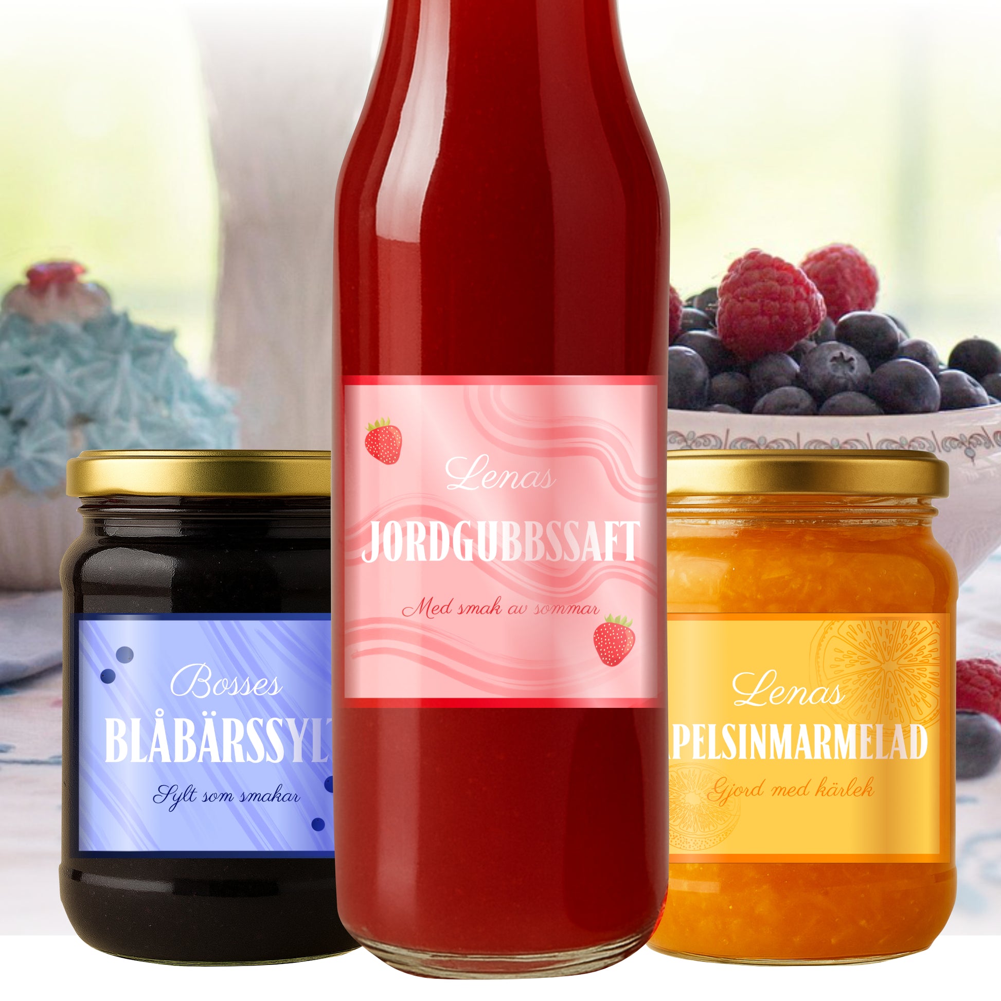 Ge dina hemgjorda delikatesser en extra charm med våra personliga etiketter! Passar utmärkt till sylt, saft, inläggningar och andra godsaker. Snabb leverans, hög kvalitet och dessutom så är de vattentåliga! Välj mall och börja designa nedan: